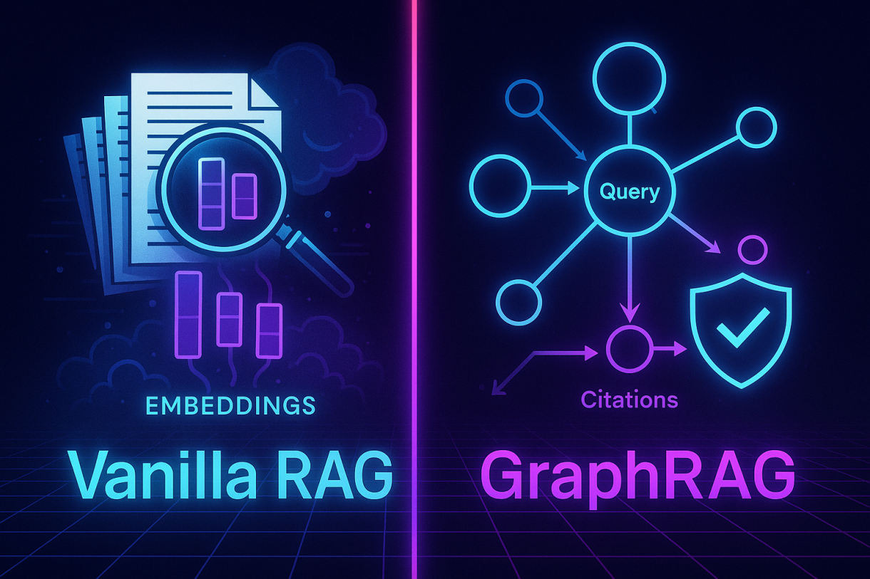 TL;DR: Vanilla RAG (vector search → stuff context → generate) is great for “find and summarize.” It breaks on multi-hop questions, entity-heavy domains, and anything that needs joins, constraints, or causality. GraphRAG adds an explicit knowledge graph—entities, relationships, events—so the model retrieves structured facts first, then uses text passages as evidence. The result: higher factuality, […]